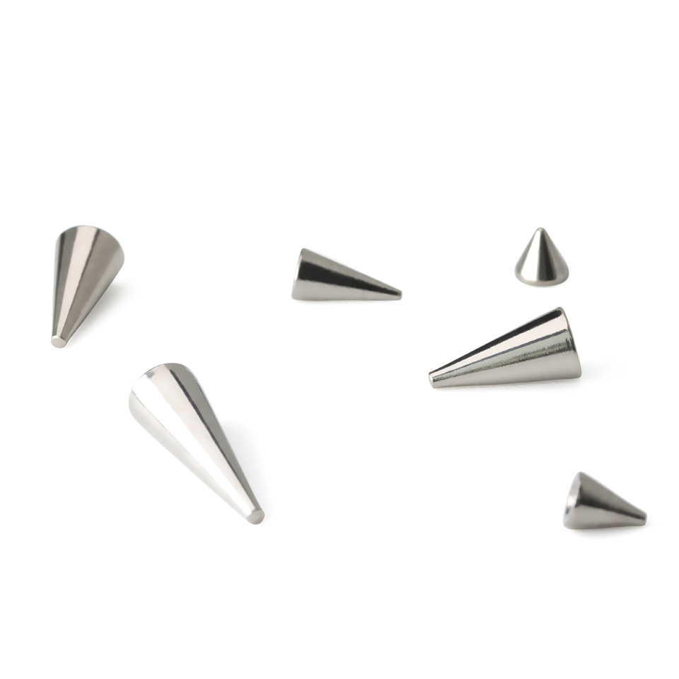 Den minste piggen er 3 mm. høy og den største er 12 mm. Så det er litt til alle typer piercinger.