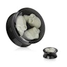 Hvis du mangler en skrekkelig kul plug til ditt stretch, så har du kommet rett sted. Litt lengre oppe på siden finner du en plug som er laget av akryl og har fått tre hodeskaller lagt ned i seg. Disse tre skallene ligger i en sirkel med ansiktet opp mot fronten av smykket. Deretter er det lagt en gjennomsiktig overflate over de tre skallene for å forsikre at de ikke faller ut, og selvfølgelig for å gi pluggen en flott finish.