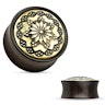 Det flotte mønsteret på fronten med blomsten i midten, ligger ovenpå en vakker gylden overflade, som passer utrolig flott til det fine treet. Pluggen fås helt opp til 25 mm. i diameter, så selv de forholdsvis store størrelser også kan få glede av det.