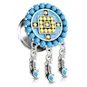 Hvis du vet litt om de gamle aztekerne, vet du også om deres gjenkjennelige pyramider, som du vil se på denne pluggen som små gule akrylperler sett ovenfra. De fire ytre gule perlene er trappene til templet på toppen av pyramiden. Rundt pyramiden er en blå emalje og helt i kanten påføres blå akrylkuler rundt.