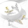 Labreten er laget av 14 karat gull og er tilgjengelig i to varianter: Vanlig gult gull og hvitt gull. Du kan også velge mellom en 6 mm. eller en 8 mm. stav. Alt etter hva du har behov for. De 5 zirkonstenene i forskjellige størrelser er et blikkfang i seg selv, og på grunn av de buede plasseringene av stenenen, passer formen perfekt inn i din helix eller øreflippen. Stenenes mål er ca 3,2 og 1 mm.