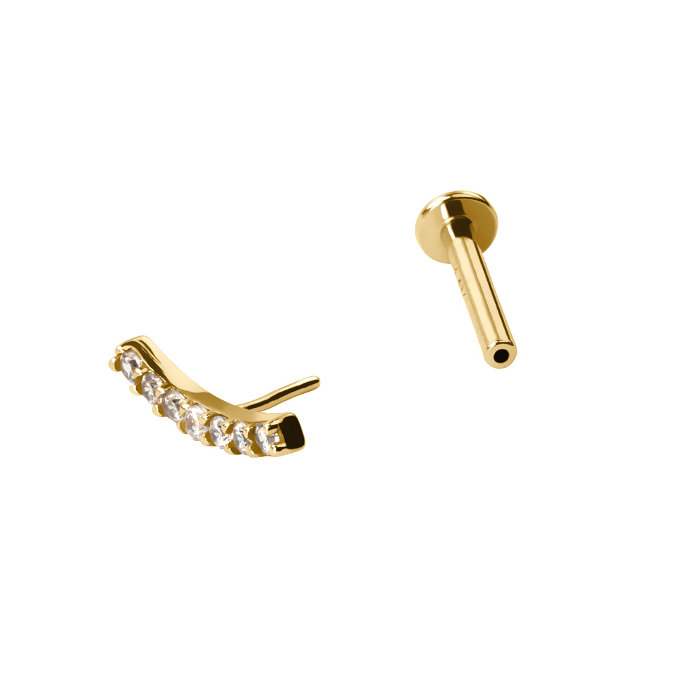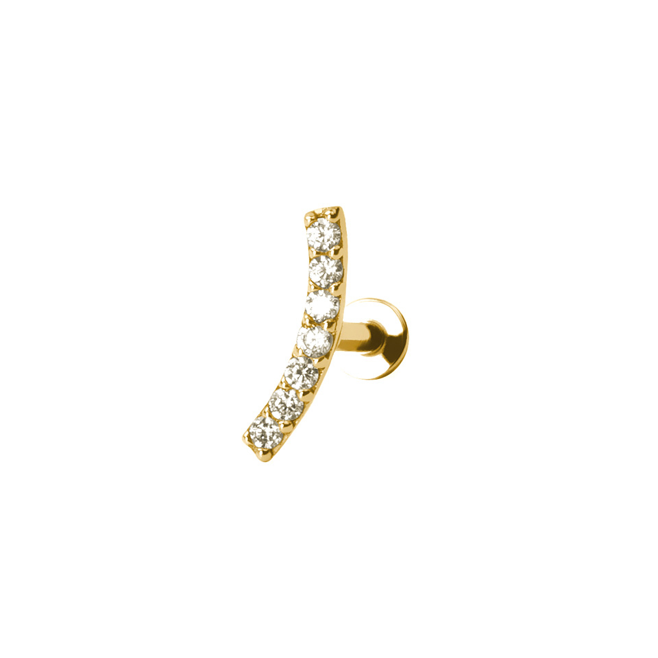 Som sagt på forsiden av labreten finner man en bue. Buen har 7 små klare stener. Formen på smykkene gjør den perfekt til f.eks. helix. Du kan bruke den der hvor dimensjonene på smykkene samsvarer med piercingen din og hvor utformingen tillater det.