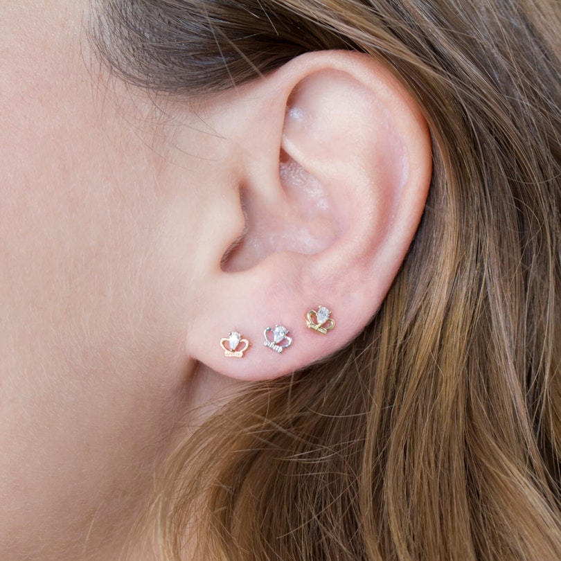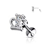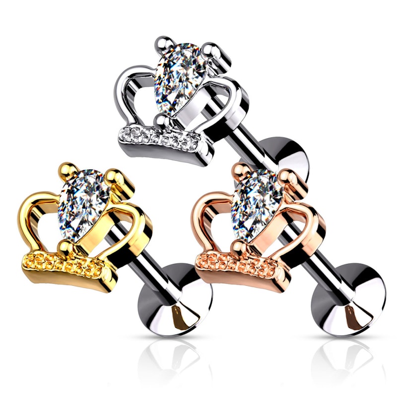 Denne labreten har en flott krone på forsiden og er tilgjengelig i flere farger. Felles for alle varianter er lengde, tykkelse og stenfarge. Kronen har en fin omvendt tåreformet klar sten på midten. På baksiden av kronen er det en liten tapp som skyves ned i staven, så det er ingen tråd som må skrus fast. Hvis du synes at kronen er for lett å ta ut, kan du gi stiften en liten push, slik at den øker spenningen nede i selve staven og blir fastere.