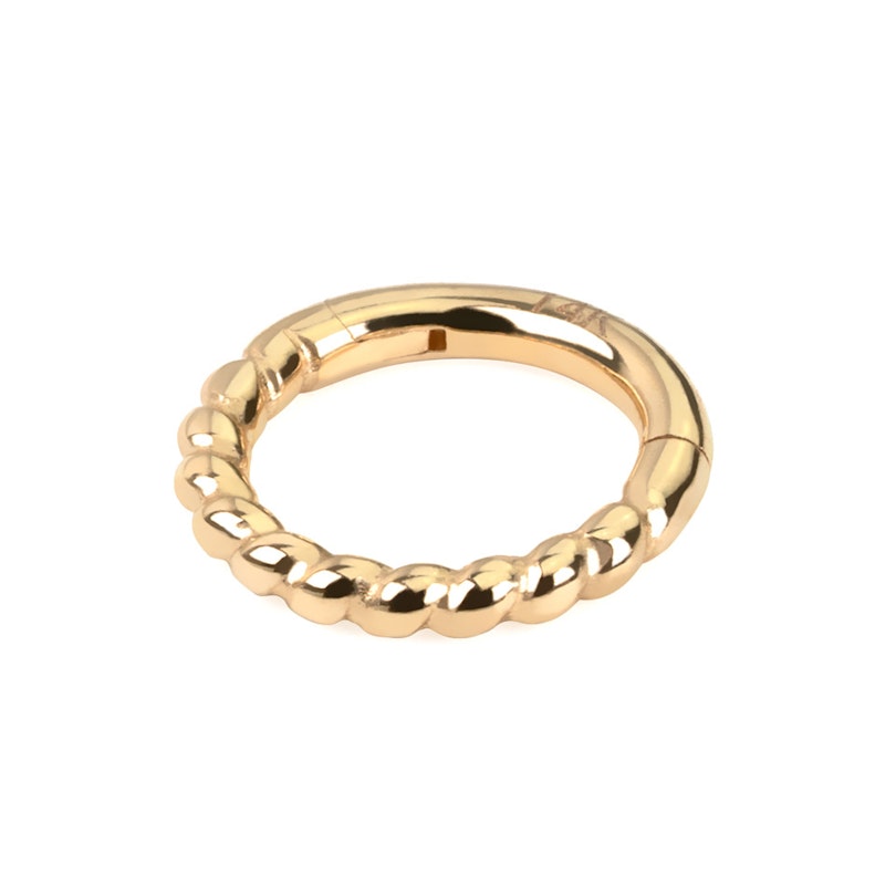 Navn: Ring av 14 Karat gull med hengsel og vridd tråd