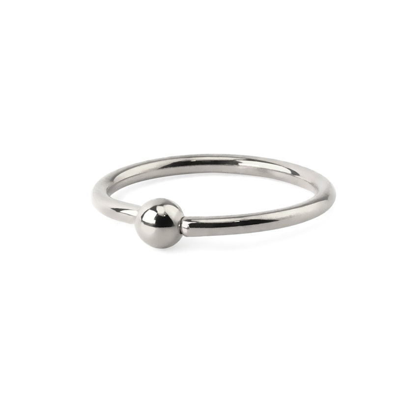 Ringen er laget av titan, som er hardmetall. Med dette materialet kan den være vanskelig å bøye. Heldigvis er ringen bare 0,8 mm. tykk så det skal ikke være noe problem. For å åpne og lukke ringen, vri ringen som en twistering.