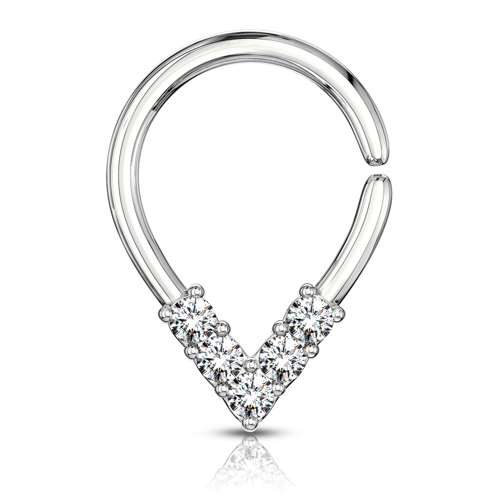 Ringen kommer i flere trådtykkelser, så du også kan bruke smykket i flere forskjellige piercinger. Den kommer blant annet i en trådtykkelse på 1 mm. og en på 1.2 mm. Derfor vil smykket blant annet sitte godt som et septumsmykke, eller som et tragussmykke.