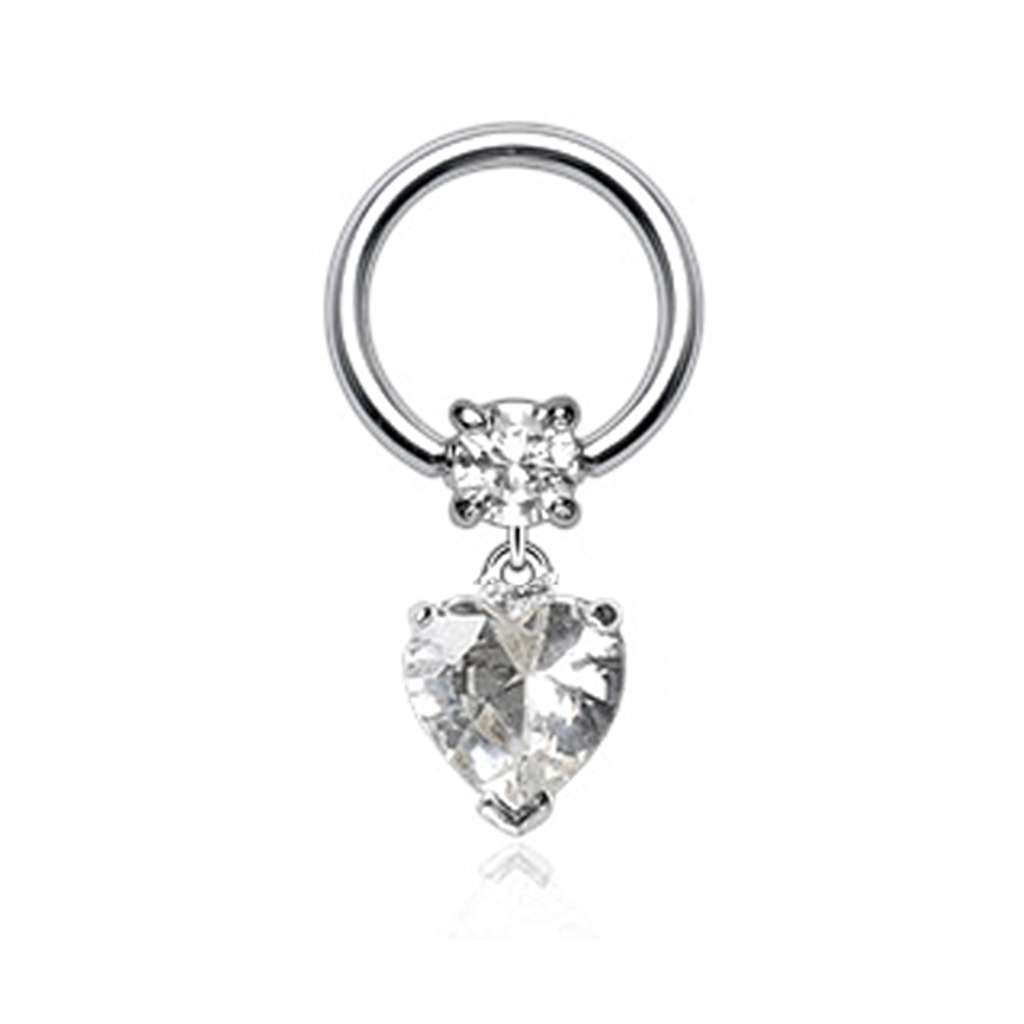 Super søt ring med et yndig lite hjerte som anheng. Den vil være idéel til din helixpiercing eller som intimpiercing hvor den også vil være utrolig søt. Ringen er laget av kirurgisk stål mens hjertet er laget av en facettskårt klar sten. Når en sten er facettskårt betydr det at den har mange kanter som en diamant, som er en form som tillater at lyset reflekteres i den fra alle vinkler. Det får den til at glimte og skinne når man holder den opp mot lyset og vender den litt.
