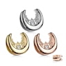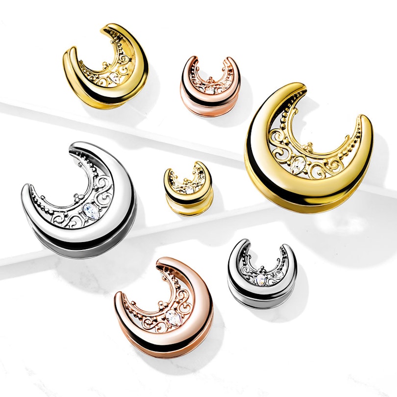 Smykkene kan kjøpes i flere forskjellige størrelser og i flere forskjellige farger. Du må ha minimum 10 mm. hull i øret for å kunne bruke den minste størrelsen. Men det spiller ingen rolle om hullet ditt er større enn den største størrelsen vi har. For smykkene med nedadgående kanter har et godt grep om øret ditt. Så selv om hullet ditt er større, vil smykkene ganske enkelt fylle ut den nedre delen av øret og la resten være åpen oppover.