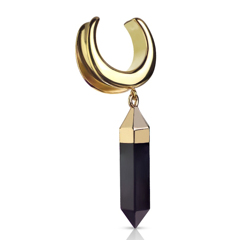 Hvis du har strechet øret ditt, kjenner du sannsynligvis til problemet med å ikke kunne bruke smykker med anheng. Men denne saddle spreaderen er det mulig,. Egentlig kan ikke denne kategoriseres som en plugg, tunnel eller taper. Det er litt av en smykketype i seg selv. Smykkene er åpne øverst, der kantene vippes ned, for å omfavne øreflippen. Du må ha et minimum hull på 10 mm. i øret for å kunne bruke disse smykkene. På den andre siden trenger du ikke å begrense deg til 25 mm. Du kan enkelt bruke den største modellen på 25 mm. selv om hullet ditt er over 25 mm.
