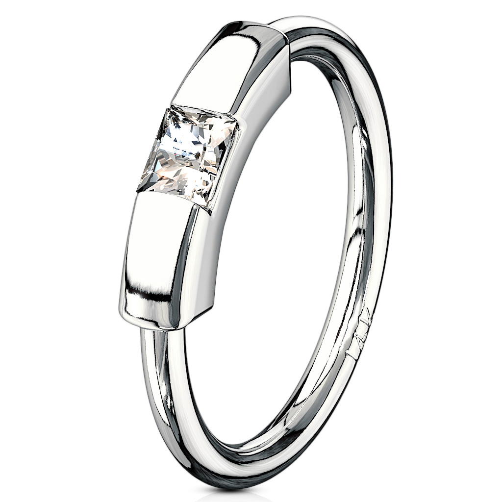 Vanvittig pen og utrolig elegant segmentring av ekte 14 karat gull til deg som er kravstor når det kommer til piercingsmykker. Denne ringen lyser tidløshet og kvalitet fra lang avstand, og det stilrene designet er utstyrt med en enkel prangende flott firkantet sten.