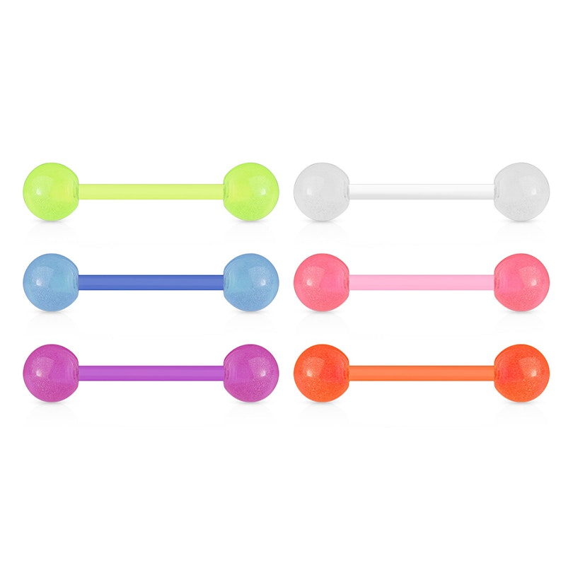 I denne pakken får du hele seks selvlysende tungepiercinger.