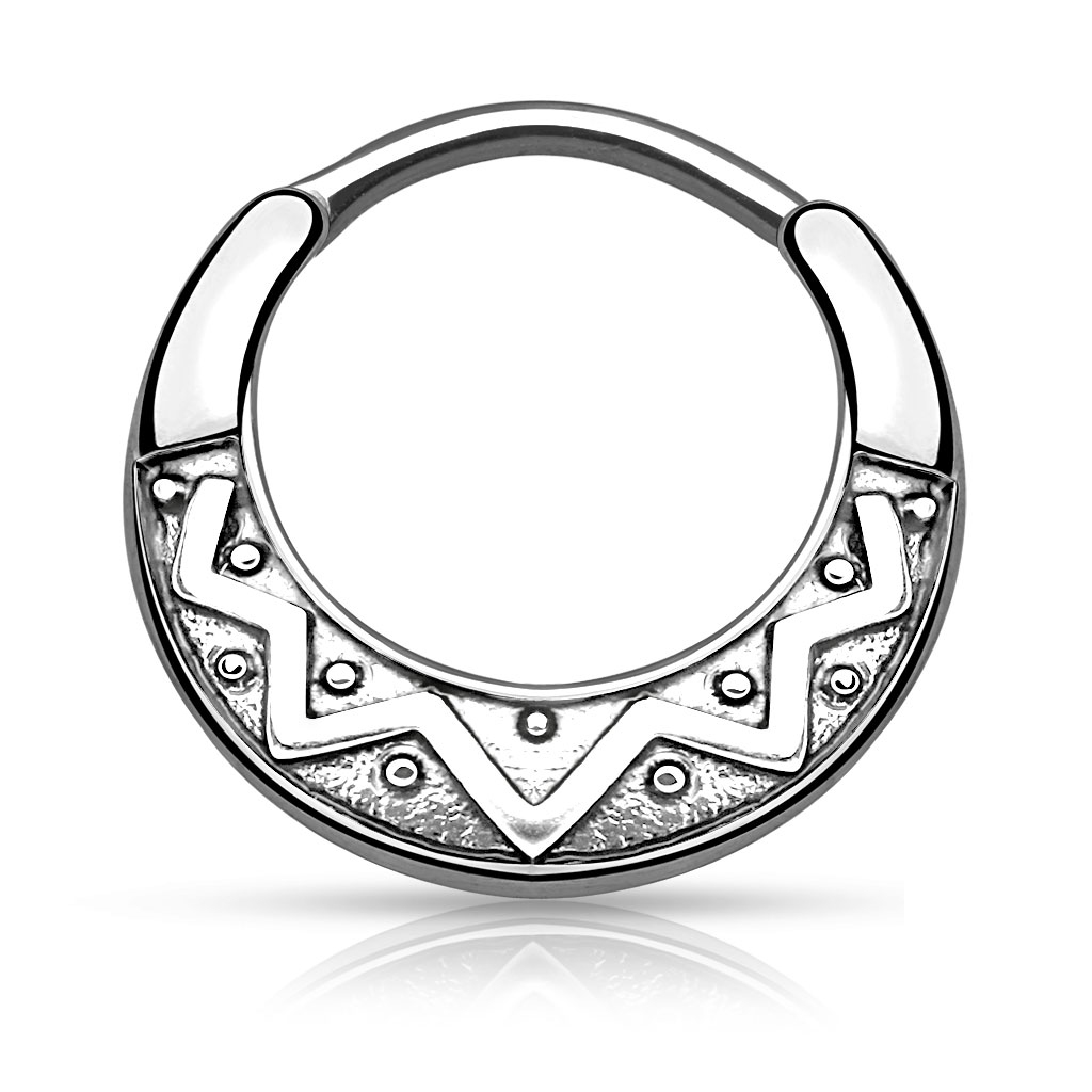 Er det unike og spesielle smykker du liker, så har du herved funnet et kjempeflott og stilig smykke til din septumpiercing. Smykket er en septumclicker, hvor den lille staven som åpner og lukker smykket, kun klikkes opp eller i, når du skal ta din septumpiercing av eller på. Staven er samtidig også den delen av smykket som går gjennom selve piercingen i nesen.