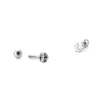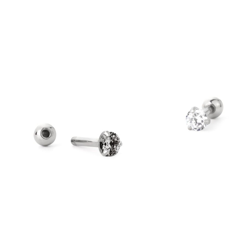 Den flotte runde stenen som sitter som enden av hver ørepiercing, er fasettskårt som en diamant og fanger derfor lyset fra alle vinkler. Det får dem til å skinne og glimte ekstra mye så de garantert blir sett. Selve stenen sitter fast med tre små fangarmer som griper rundt om den og sørger for at den blir sittende hvor den skal.