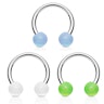 Superkult smykkesett med tre hestesko i hver sin selvlysende farge. Selve hesteskoen er laget av ren kirurgisk stål mens kulene er laget av akryl, som lyser i mørket hvis de blir oppladet under en lampe. Du får hele tre hestesko i denne pakken i fargene blå, grønn og hvit.