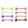 I denne pakken får du 8 tungerpiercinger med teflon stav og akryl kuler i mange forskjellige farger.