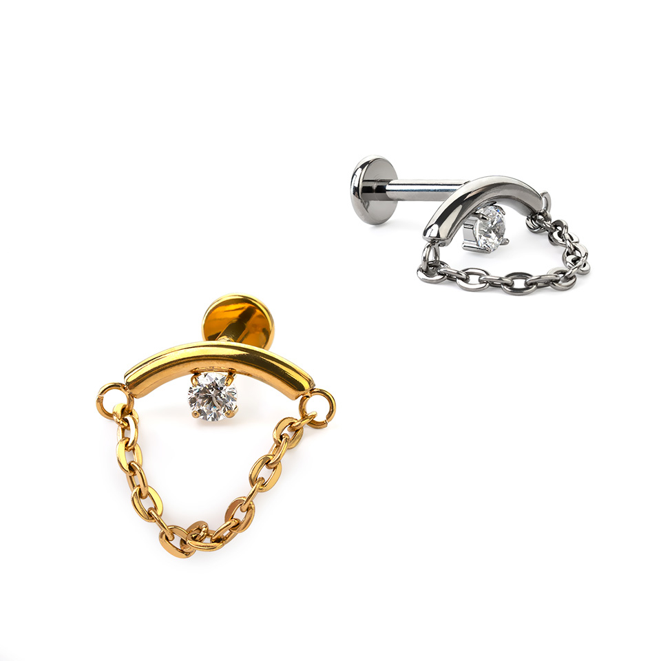 Jeg har brukt den gyldne versjonen som helix piercing kontinuerlig i et halvt år. Fargen har ikke falmet et snev, og steinen er fortsatt intakt, selv om jeg har vært på badeland og strender flere ganger med den. Den er komfortabel å sove med og er helt umerkelig å ha på. Kjeden min har heller ikke satt seg fast i noe.