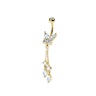 Denne glitrende navlepiercingen prydes av en vakker sommerfugl nederst på kulen, med flere skinnende stener i anhengene som henger fra sommerfuglen i delikate kjeder.