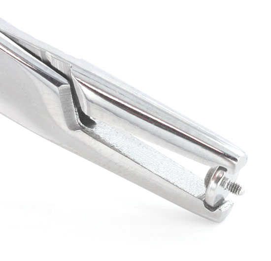 Med denne tangen kan du få et fast grep rundt din disk slik at du lett kan dreie den ned i platen. Tangen er utstyrt med en liten rille i tangens kjøper, som gjør at du kan få fatt om din dermal anchor topp. Den passer til de mest normale mål, som er fra 3 mm. og opp til 6 mm. Når man først har fått et godt grep om sin topp, kan tangen låses ved hjelp av tre små "hakk", som med et lite twist lett kan løsnes igjen.