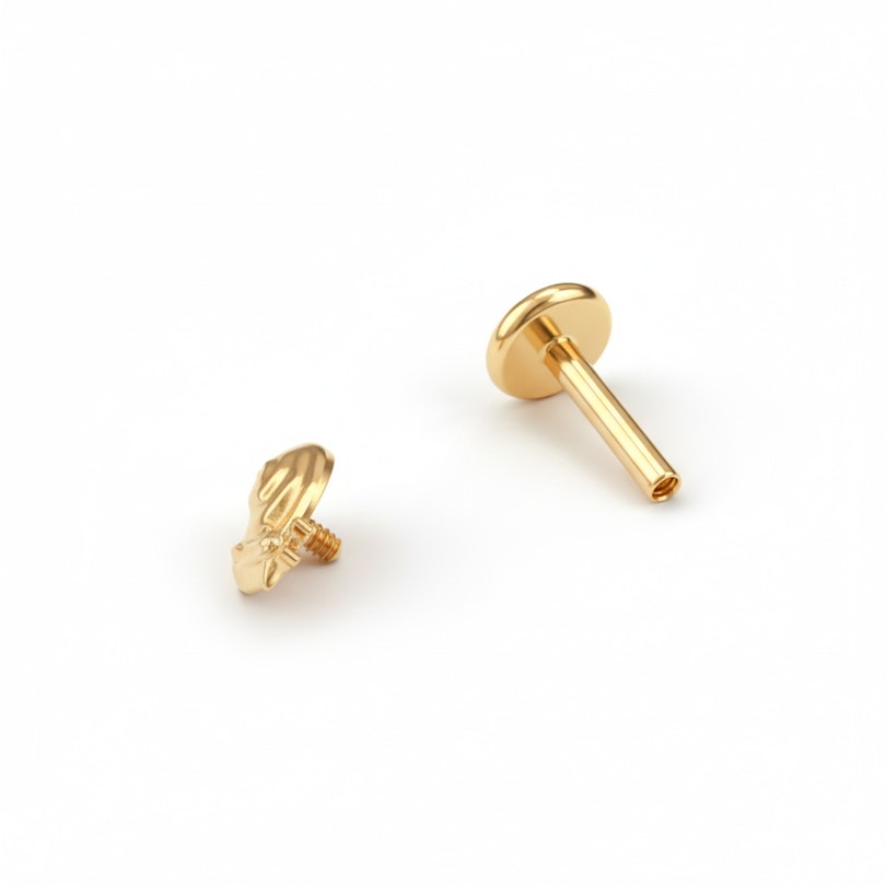 Den er laget av titan, så den er både allergivennlig, vanntett og slitesterkt nok for daglig bruk. Den Innvendige gjengen gjør innsettingen smidig og sørger for en sikker passform, så det sitter der den skal. Passer til conch, helix, øreflipp og tragus, med en flatback for komfort hele dagen.