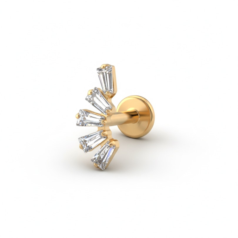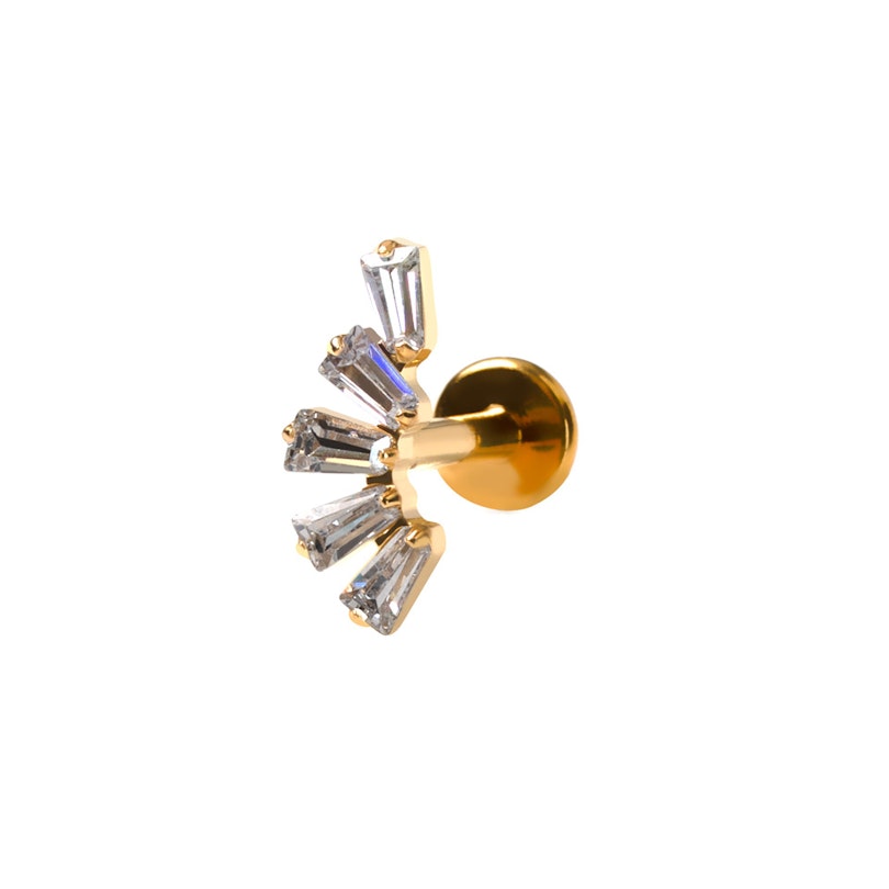 Tilgjengelig med gull- eller sølvfinish, egner den seg godt til conch-, helix- eller øreflipppiercinger. Enten det er til en galleråpning, eller til et pent antrekk for jobben. Det kan til og med være den siste lille detaljen som gir det lille eksta når du kombinerer smykker.