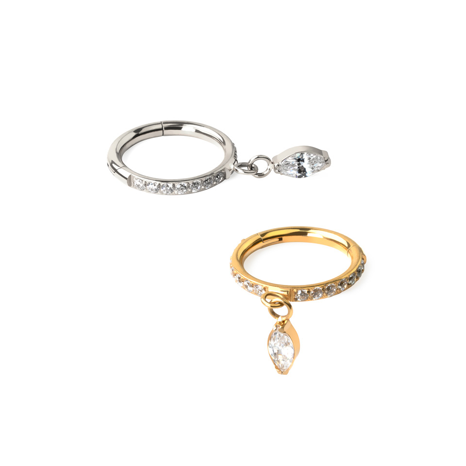 Titanring med hengsel, forvovervendte stener og marquise-slipte stener med sjarm
