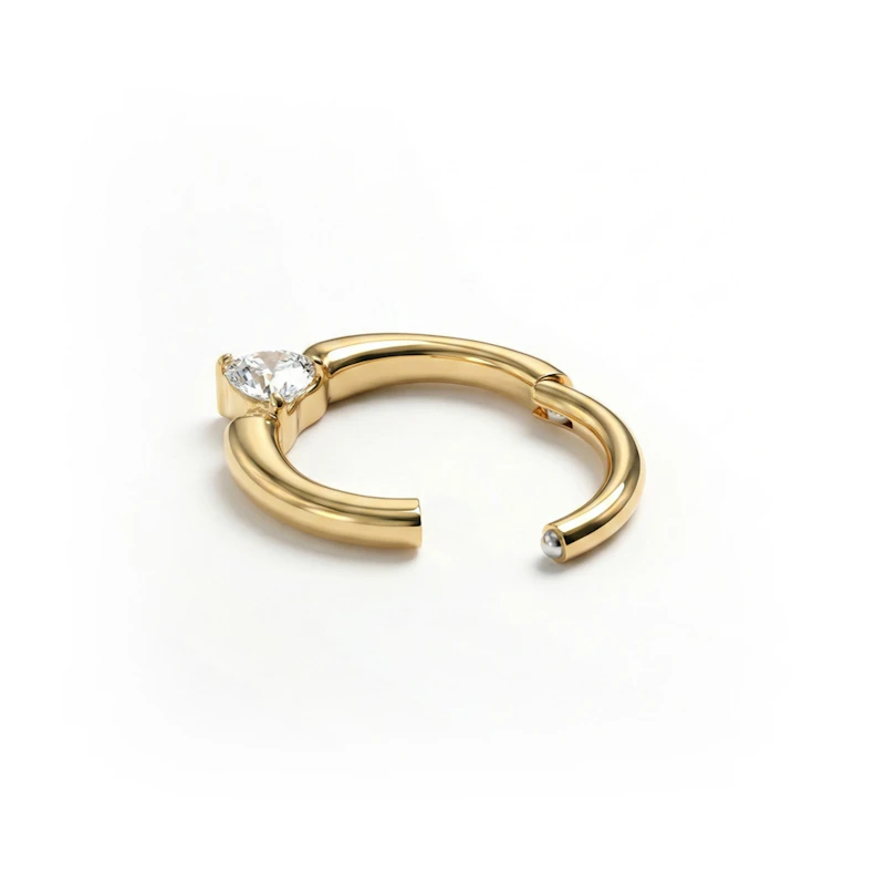 Den hjerteformedestenen er fattet med klør, noe som gjør ringen både slitesterk og lysreflekterende. Denne allsidige ringen passer til daith, helix og septum-piercinger og er skapt til å utvikle din personlige stil.