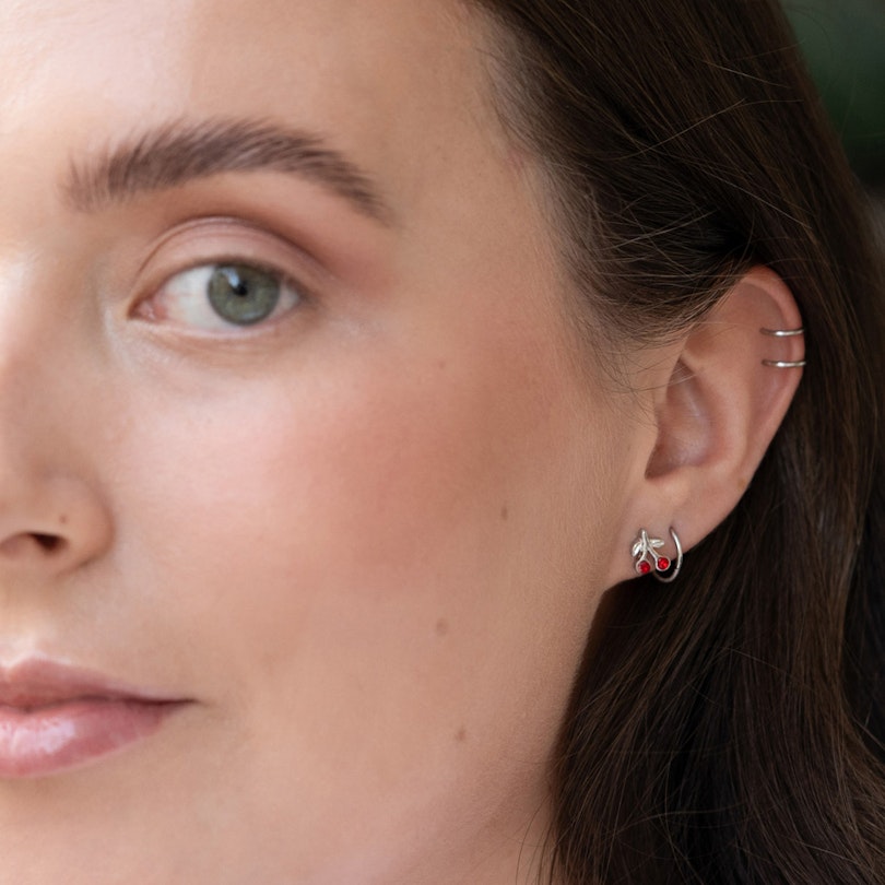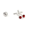 Staven på dette piercingsmykket måler 6 mm. så det passer de aller fleste. Foran på staven sitter to små kirsebær laget av små røde stener.