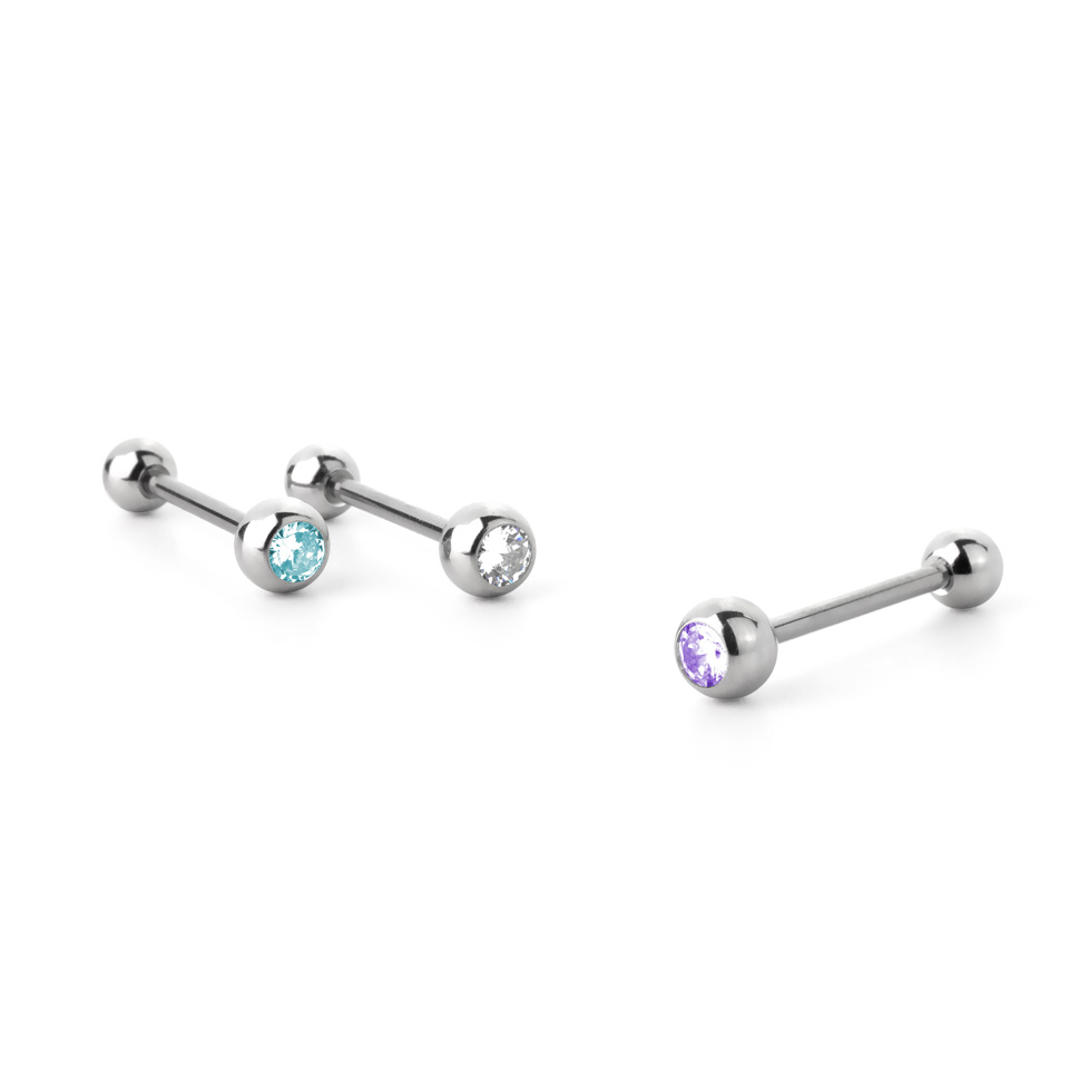 Få deg en enkel og superflott tungepiercing med en flott fasettskårt sten som pynter toppkulen av dette lekre tungesmykket. Denne tungepiercingen fås i et utall av forskjellige varianter så du har her sjansen til å få fingrene, eller tungen, i et smykke som på alle måter passer til nøyaktig din tunge, din smak og din lommebok.