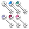 Dette smykket er som en hvilken som helst tungepiercing med unntaket at den har en unik og vakker toppkule med en syntetisk opalsten. Opalen er godt festet ved hjelp av metallet rundt kantene og kan derfor ligge løst i selve kulen uten å falle ut.