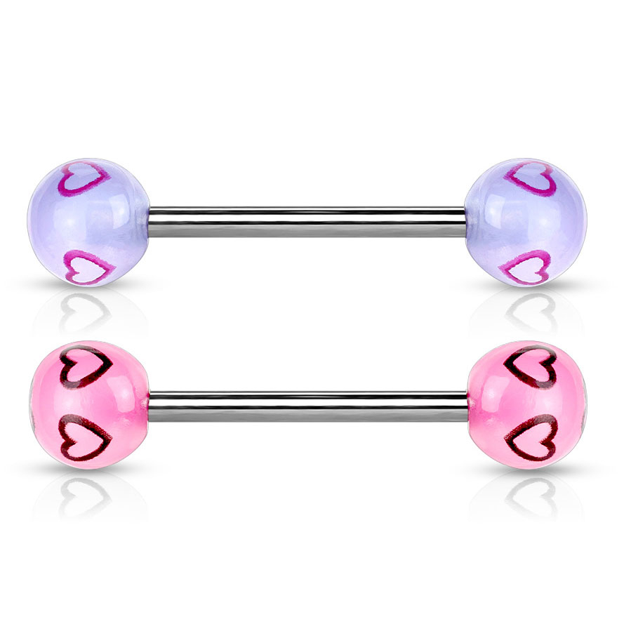 Disse tungepiercingene er fremstillt i kirurgisk stål og kulene er akryl. Akryl er skånsomt mot dine tenner og er derfor et godt materiale til tungepiercing-smykker.