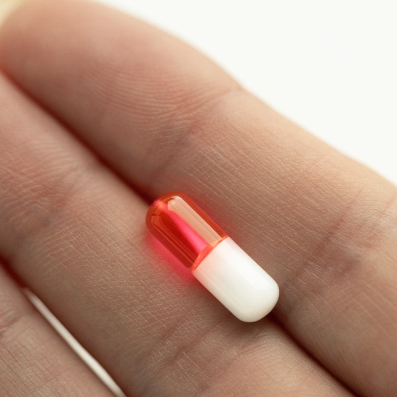Den tofargede pillen er i naturtro størrelse og er 16 mm. hvilken noenlunde svarer tll størrelsen på en panodil. Denne pillen er allikevell langt fra bare hvit som en alminnelige panodil. Det du har med å gjøre her er en flott eksotisk pille som fås i hele syv forskjellige fargekombinasjoner. Den ene halvdelen av pillen er hvit på alle modellene mens den andre halvdelen er den fargen som du selv velger. Bunnkulen vil også ha den fargen som du selv velger.