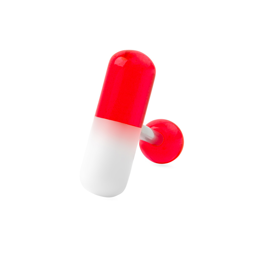 Legg pillen midt på tungen, tip hodet bakover og svelg. Slik pleier man å gå frem nå man skal sluke en pille, men her kan du få deg en pille som blir liggende på din tunge uansett hva du gjør. Du får nemlig her en evighetspille i form av denne fete og litt frekke tungepiercingen.