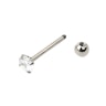 Staven er laget av kirurgisk stål og har standard tungepiercingmål; 16 mm lang og 1,6 mm tykk.