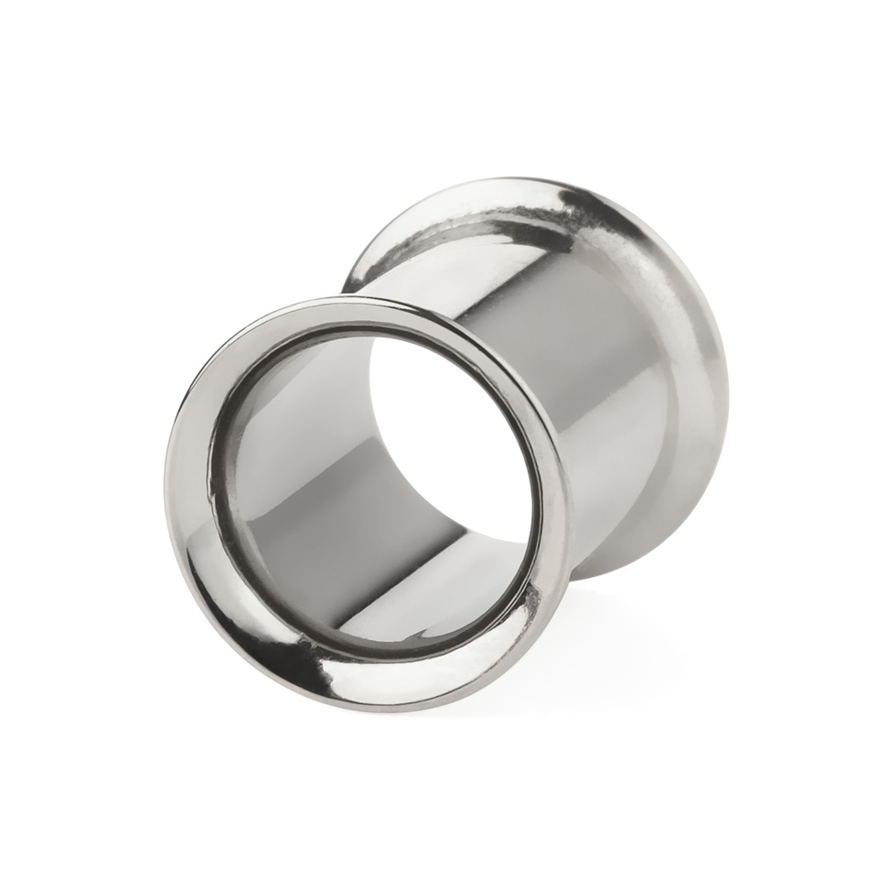 Her er en riktig lekker tunnel i det sikre materiale kirurgisk stål. Denne modellen er en såkaldt double flare, hvilket betyr at den har en forhøyet kant i begge ender. Det gjør at den sitter super godt fast i øret uten fare for at den faller ut igjenn. Du kan bl.a. velge om du ønsker din nye flotte tunnel i en klassisk blank eller sort farge. Med den blanke går det aldri galt på byen hvis man ønsker et tidløst og enkelt look, mens den sorte variant gir litt ekstra kant til helhetsinntrykket samtidig med at den stadig er forholdsvis klassisk i sin fremtoning.