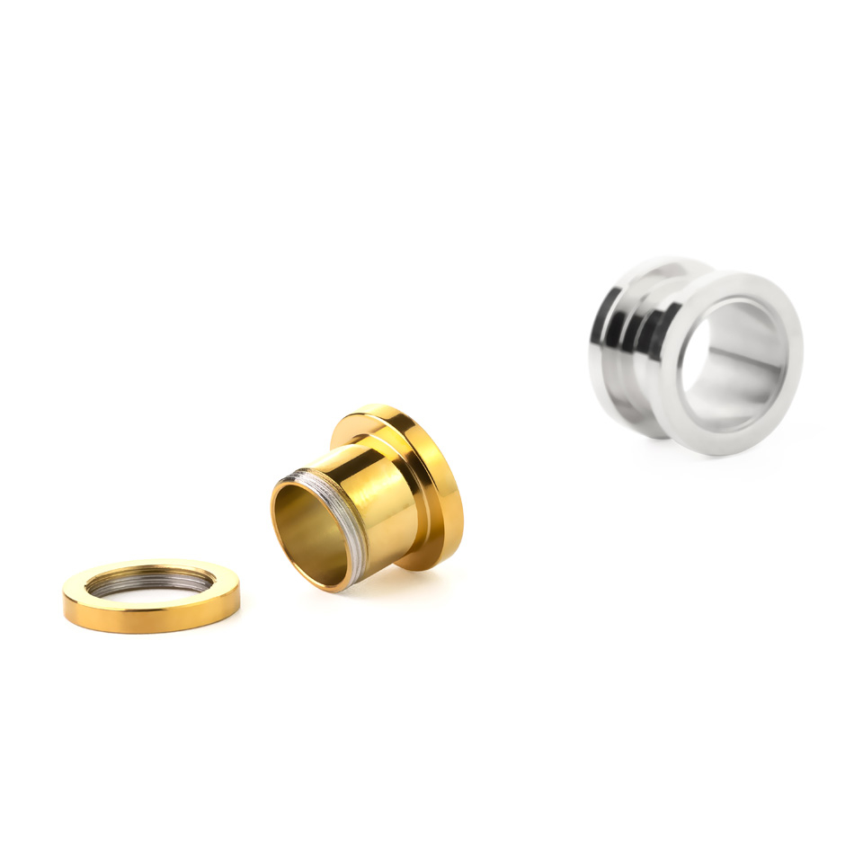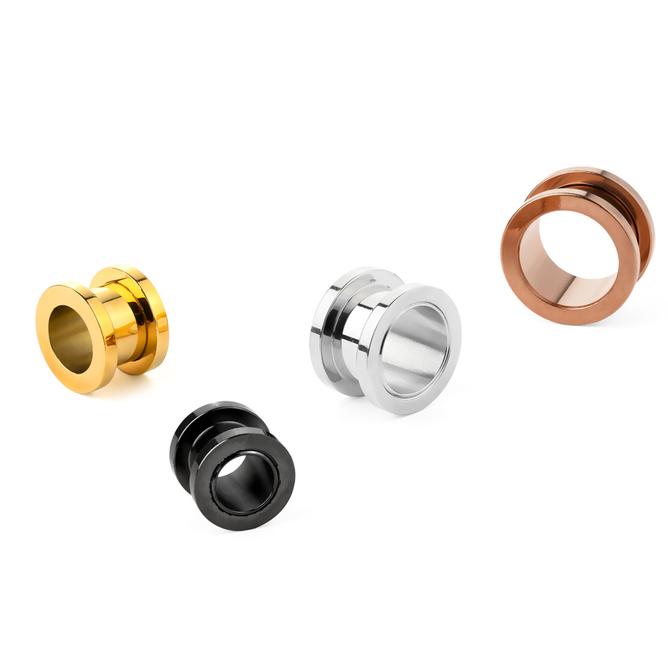 Denne flotte tunnel er laget av kirurgisk stål og fås i fire flotte farger. Den blanke modellen er av ren kirurgisk stål mens de andre har fått forskjellige former for belegg, som gir dem deres flotte farger. Den gullfargede er for eksempel belagt med et tynt lag ekte 14 karats bladgull.