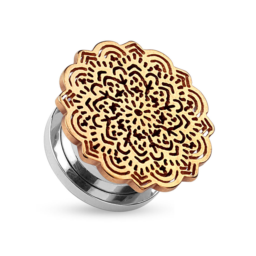 Den flott tunnelen fås i flere forskjellige størrelser, så du skal kun velge den som passer til ditt stretch, før du legger varen i kurven og går videre til bestilling. Selve mandalamotivet er en smule større en smykkets egentlige diameterstørrelse, så det kan godt se ut som om du har et litt større stretch enn du rent faktisk har.