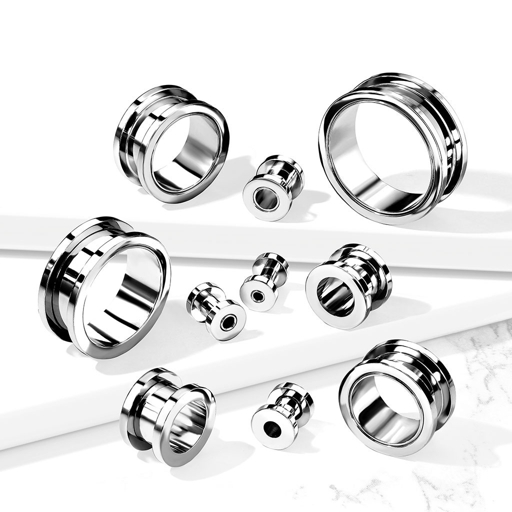 Tunnelen kommer, som navnet også antyder, med en skruegjenge. Dette betyr at bakdelen på smykkene kan skrus av, slik at du lettere kan få smykkene inn og ut av øret. Smykkene kan velges i størrelser fra 3 mm (8g). og opptil 25 mm (1-inch).