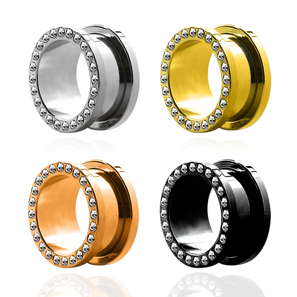 Smykket er laget av kirurgisk stål og de forskjellige variantene er belagt for å gi dem andre farger. Du kan derfor for eksempel velge denne tunnelen i en sort eller en gull-utgave. Tunnelen er også utstyrt med et skruegjenge, som gjør innføring så lett som en lek - skru bare bakenden av, sett smykket i øret og skru bakenden på igjen.