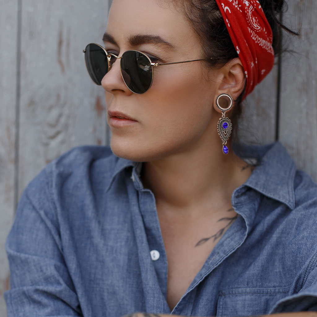 Du kan bruke denne tunnelen hvis du har et hull i øret som er mellom 6 og 16 mm. Begge størrelsene er inkludert. Tunnelen er laget av kirurgisk stål og har en messingperle i fronten. Anhenget er også laget av messing.