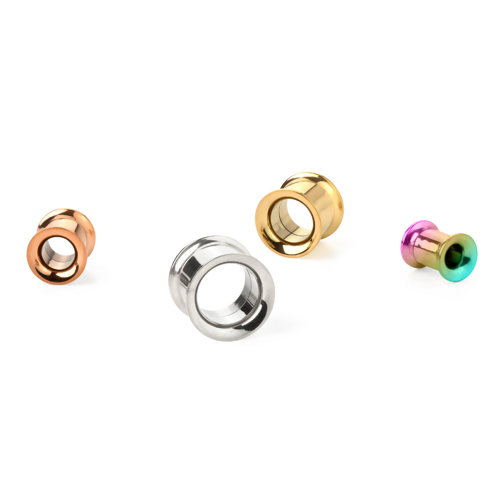 Fin og enkel tunnel i den stilrene looken til deg som gjerne vil holde deg til det enkle men klassiske designet når du stretcher. Denne vakre tunnelen er laget av kirurgisk stål som etterpå er blitt farget. Kirurgisk stål er mye brukt til piercingsmykker og her får du det i luksusutgaven med gullbelegg på.