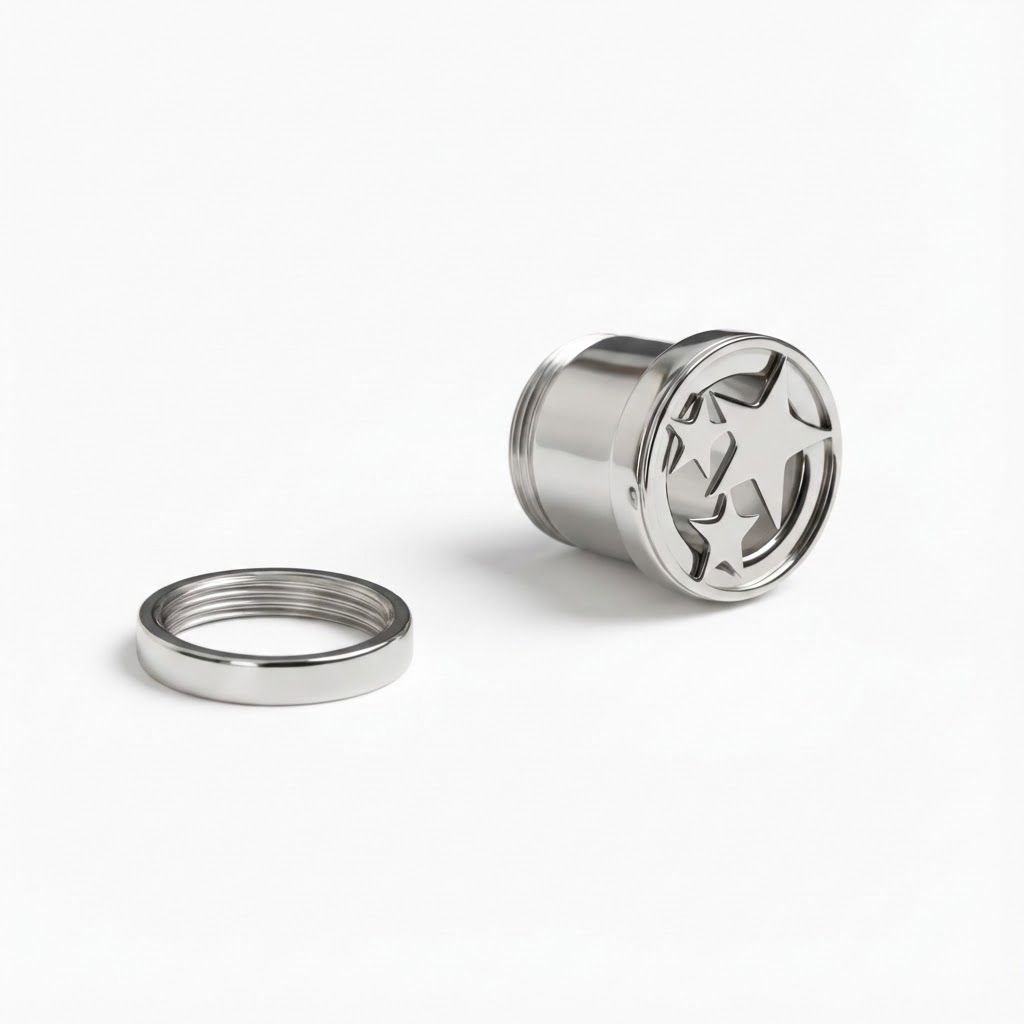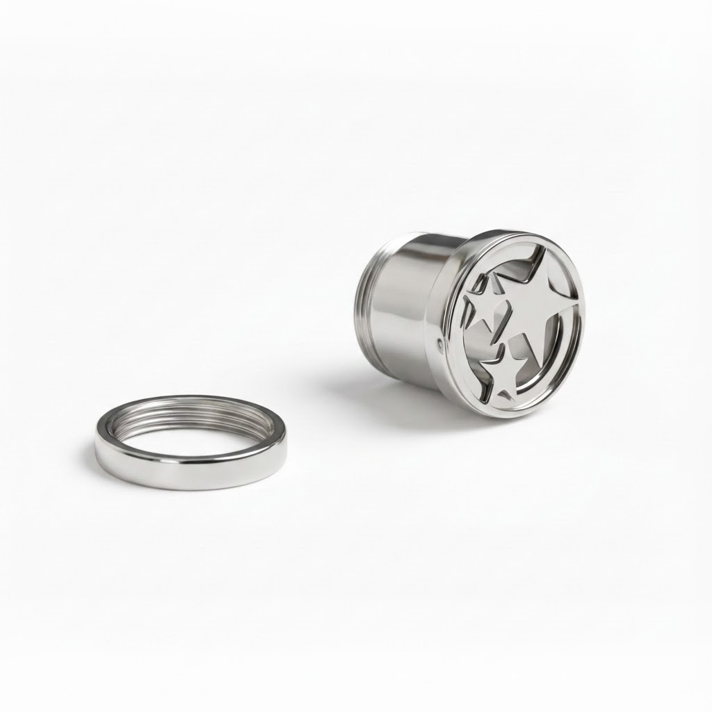 Den er laget av kirurgisk stål, slitesterk, vanntett og egner seg for de fleste hudtyper. Den utvendige gjengen gjør det enkelt: sett inn tunnelen, skru på baksiden, og vipps så er du klar.