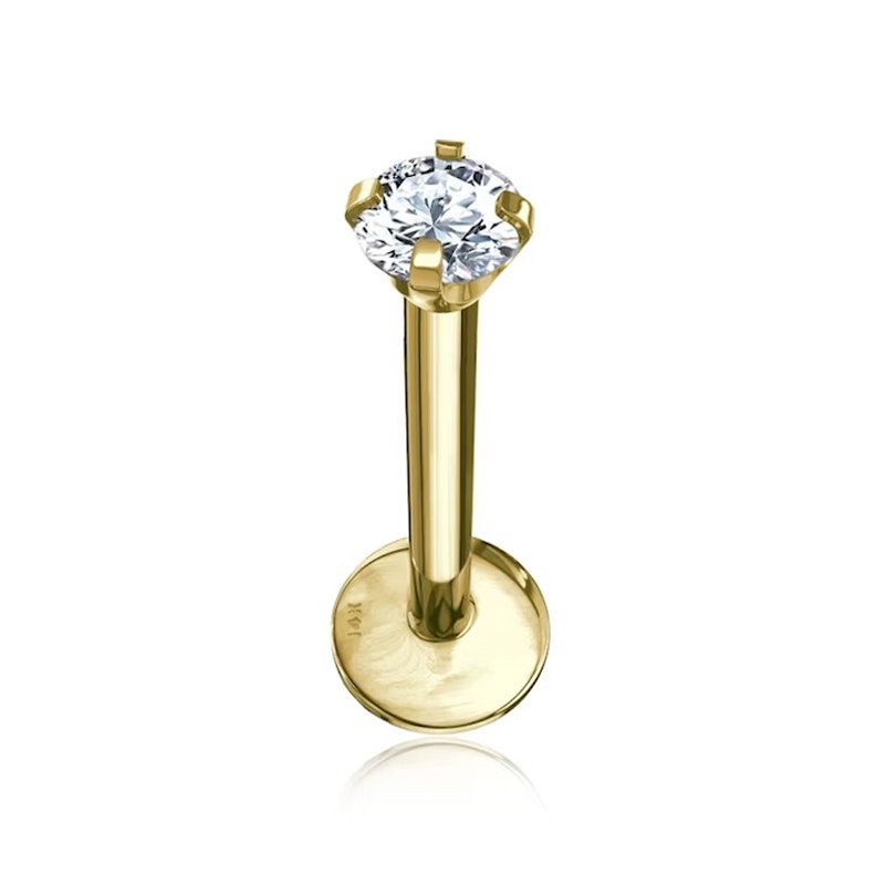 Labret av 14 karat gull med innvendig gjenge og sten