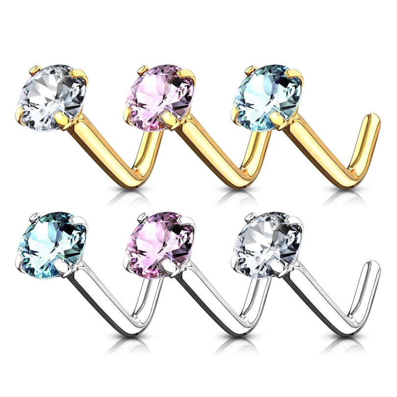 Denne nesepiercingen har en myk liten bøy ca. midt på staven, som sikrer at smykket sitter godt og sikkert fast, uten stikkende deler på innsiden, og uten fare for å falle ut. Designet er altså et hakk mer smart og praktisk enn den simplere og helt rette nesestaven.