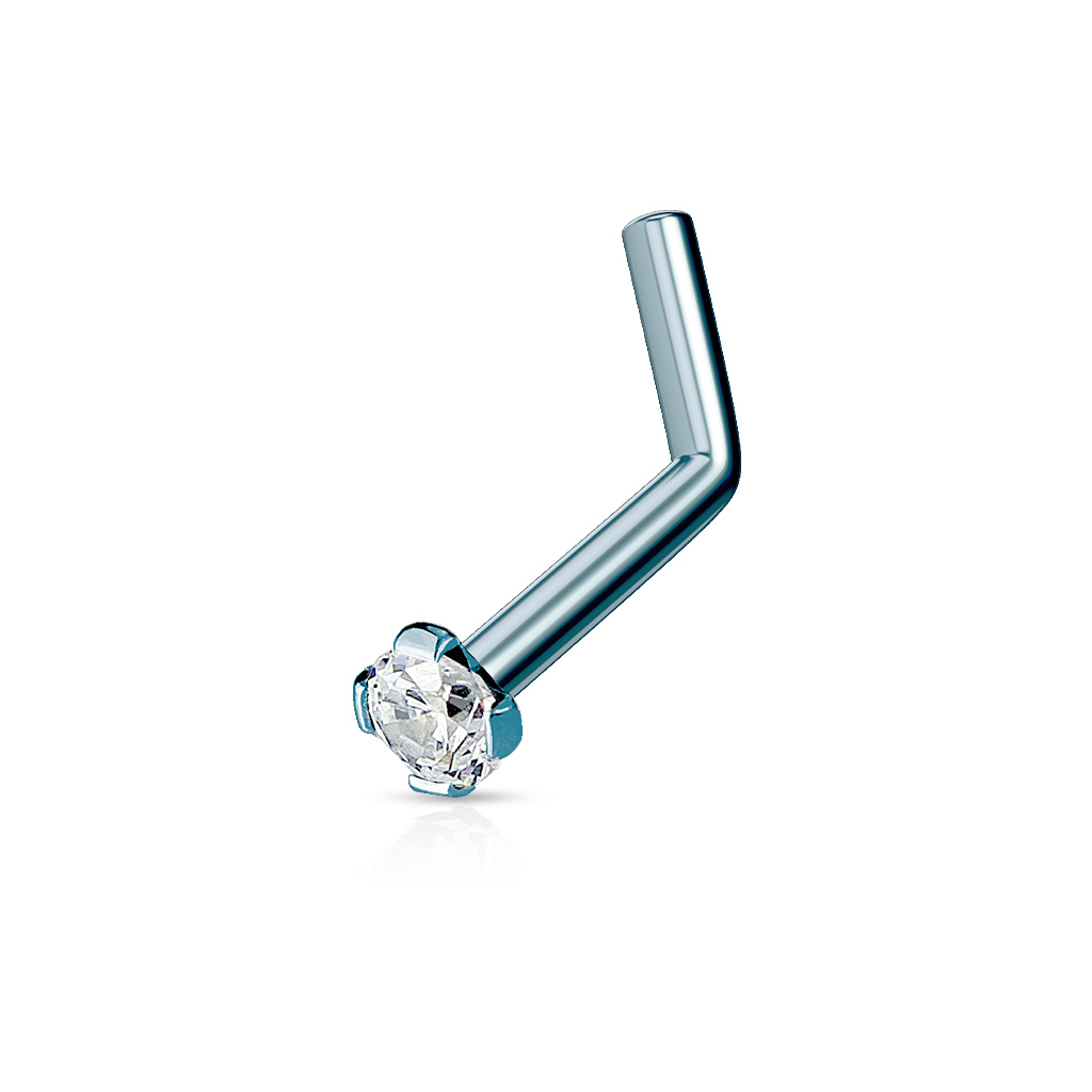 Skaff deg et enkelt, flottt og elegant smykke til din nesepiercing, som er både unikt og bemerkelsesverdig uten på noen måte å virke for prangende. Denne fine lille nesepiercingen er formet litt som et "L" og er noe av en mellomting mellom alminnelige nesestaver og neseskruer som skal lirkes forsiktigt på plass. Du får på en måte det beste fra begge verdner her. Smykket er lett og bekvemt å få inn og ut, nøyaktig som en nesestav er, og egner seg derfor fint til hyppige skift. Den lille knekken på staven har samtidig den effekt at smykket sitter noe bedre fast enn nesestaver gjør. Det er en fordel som er hentet med inspirasjon fra neseskruens design.