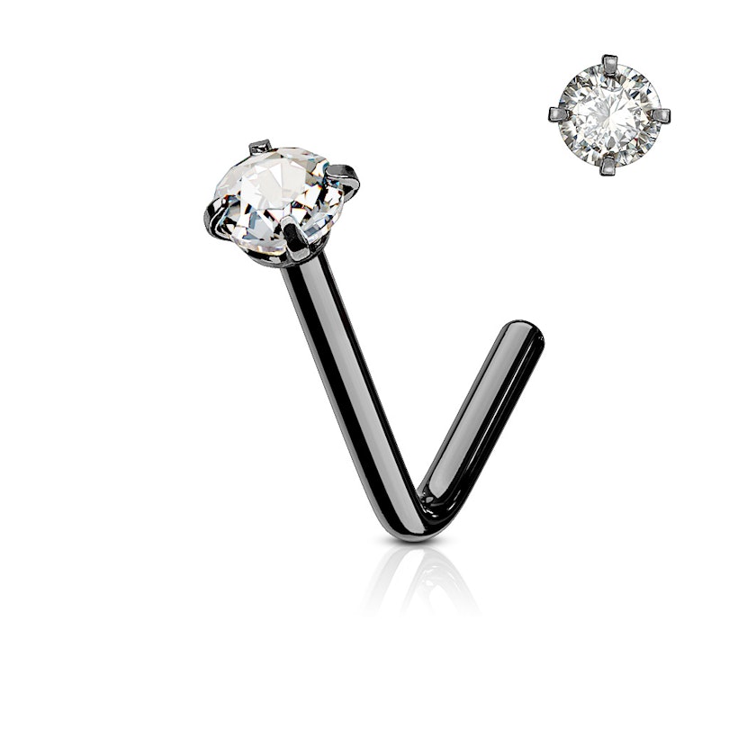 Nesepiercingen har en L-form, hvilket gjør at smykket sitter godt fast i nesen og ikke så lett faller ut. Alle utgavene av nesepiercingen har like mål - de har en trådtykkelse på 0,8 mm. og en lengde på 6 mm. Størrelsen på stenen varierer fra 2,5 mm. til 3 mm., alt etter hvilken modell du velger. Alle modellene er laget av kirurgisk stål.