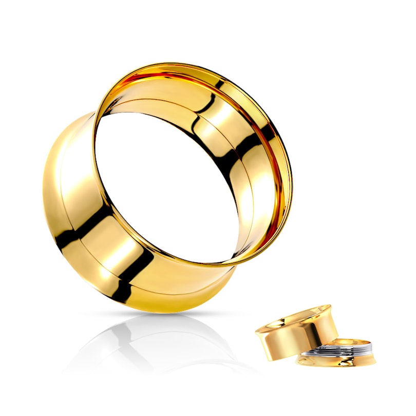 Fin og enkel tunnel i den stilrene looken til deg som gjerne vil holde deg til det enkle men klassiske designet når du stretcher. Denne vakre tunnelen er laget av kirurgisk stål som etterpå er blitt farget. Kirurgisk stål er mye brukt til piercingsmykker og her får du det i luksusutgaven med gullbelegg på.